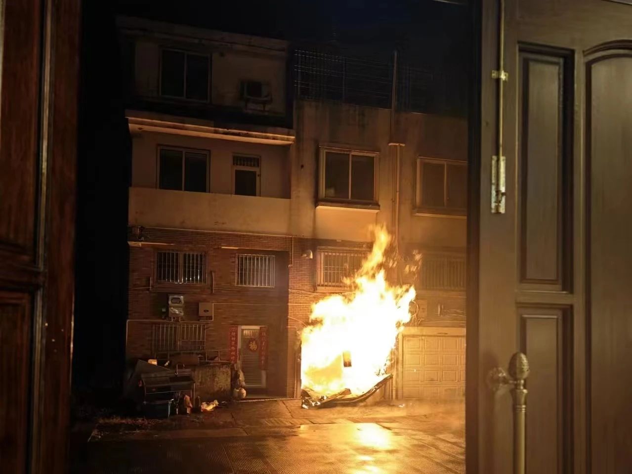 幾分鐘內車庫門被燒毀