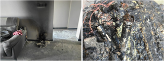 1 2024 年 2 月,廣東省梅州市一房屋起火,墻體、地面全被熏黑,在客廳角落的掃地機器人被燒得面目全非,家中兩只貓咪也不幸死亡,起火原因系掃地機器人內(nèi)部鋰電池發(fā)生熱失控蔓延成災(zāi)。