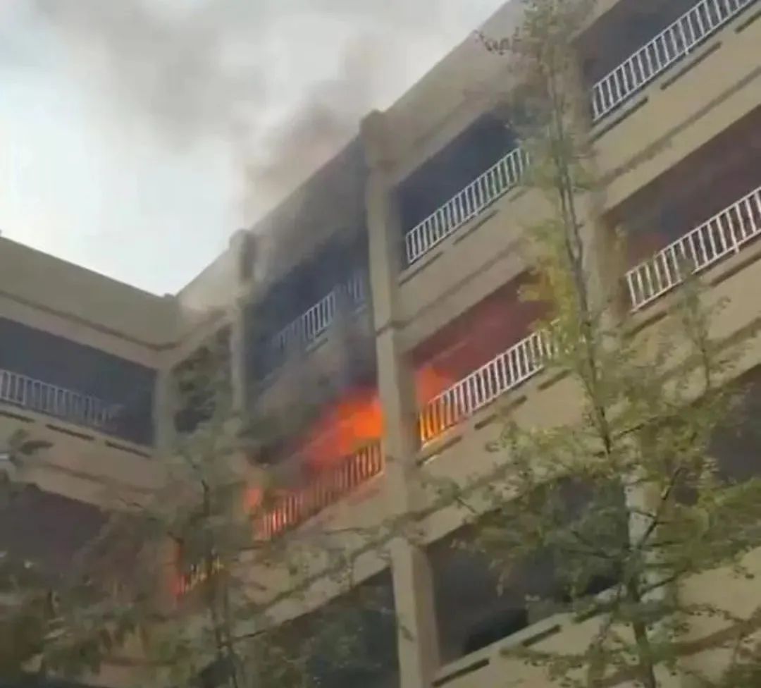 學校教學樓四樓冒出黑煙