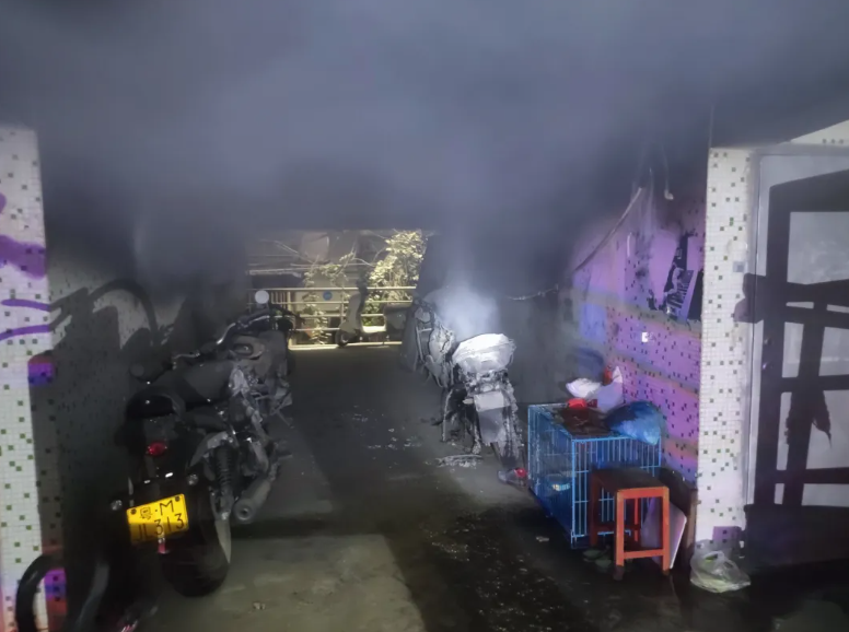 2024914日晚,廣東深圳光明區(qū)一小區(qū)專(zhuān)用車(chē)房走道內(nèi)電動(dòng)自行車(chē)著火