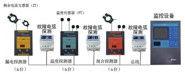 此產品除能獨立式工作外還能與本公司生產的DJ800型電氣火災監控設備構成系統工作,也可以通過本公司生產的智能數據傳輸單元(iDTU)連接云服務大數據平臺,實現無線數據監控、傳輸。