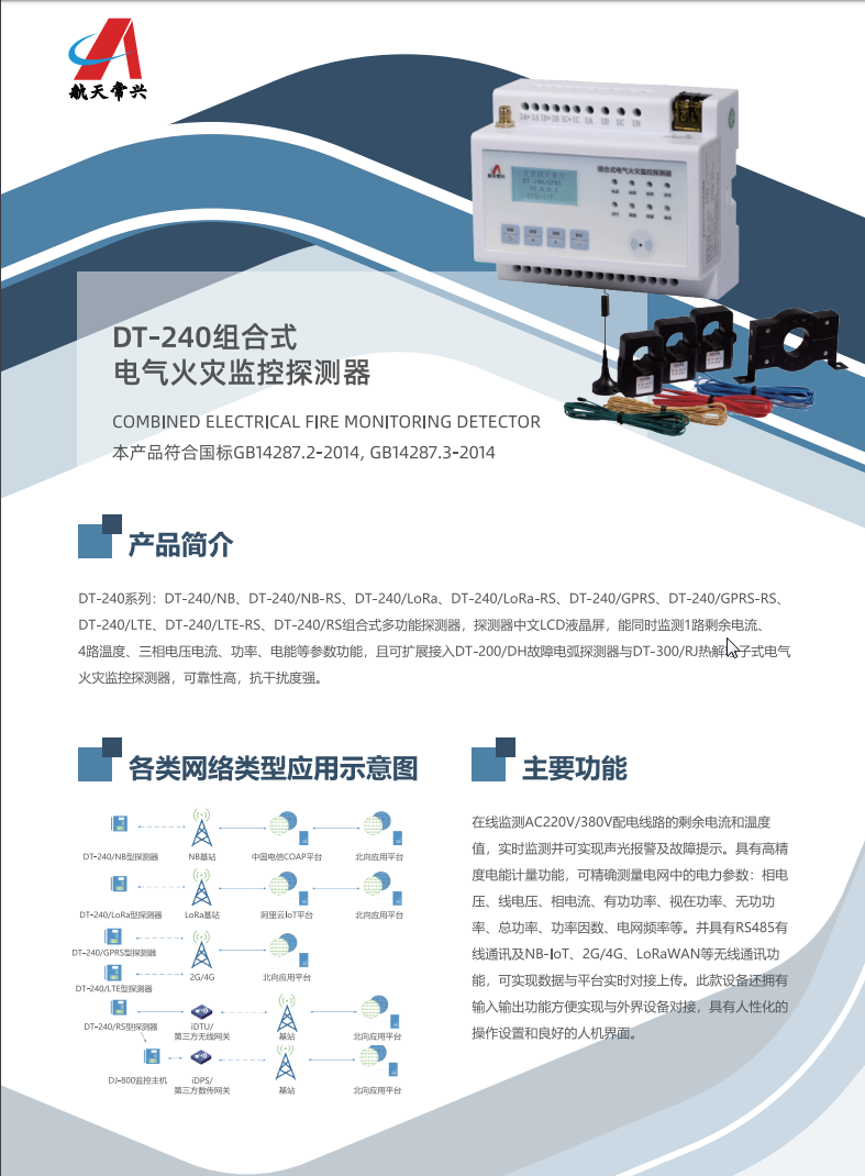 電氣火災監控系統 | 智能疏散指示系統 | 漏電探測器 | 剩余電流探測器 | e火控系列 | DT-200 T201LW T204L T204W J80 | 航天常興  網站地圖