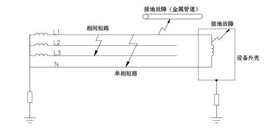 接地故障和帶電導(dǎo)體間的短路線路負(fù)載過重是電氣火災(zāi)的基本成因,電氣火災(zāi)中的接地故障指的是帶電導(dǎo)體與地面的短路,如下圖所示: