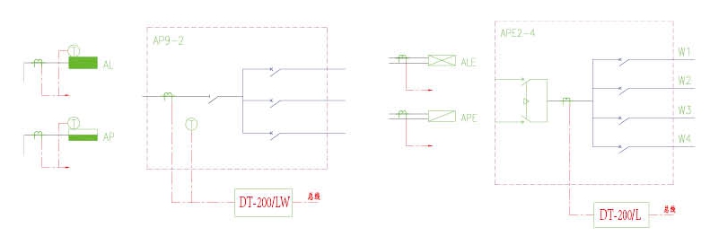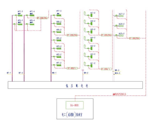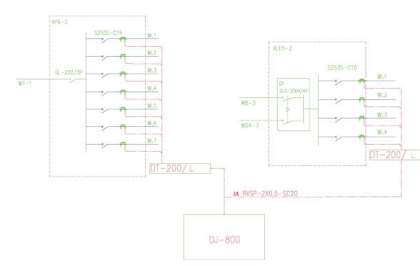 在配電箱系統(tǒng)圖的電纜出線端,安裝監(jiān)控探測器的設(shè)計圖例如下所示: