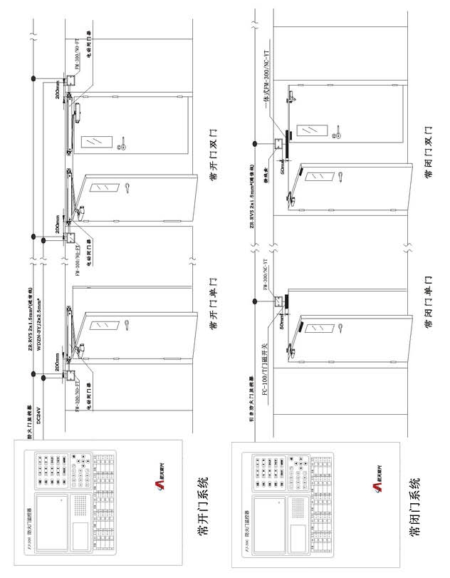 防火門監(jiān)控系統(tǒng)由防火門監(jiān)控器FJ-500、防火門監(jiān)控器分機FJ-500F、電動閉門器FB-100/65/85/100/120/150、分體式常開防火門監(jiān)控模塊FM-300/NO-FT、分體式常閉防火門監(jiān)控模塊FM-300/NC-FT、一體式常閉防火門監(jiān)控模塊FM-300/NC-YT及門磁開關組成。
